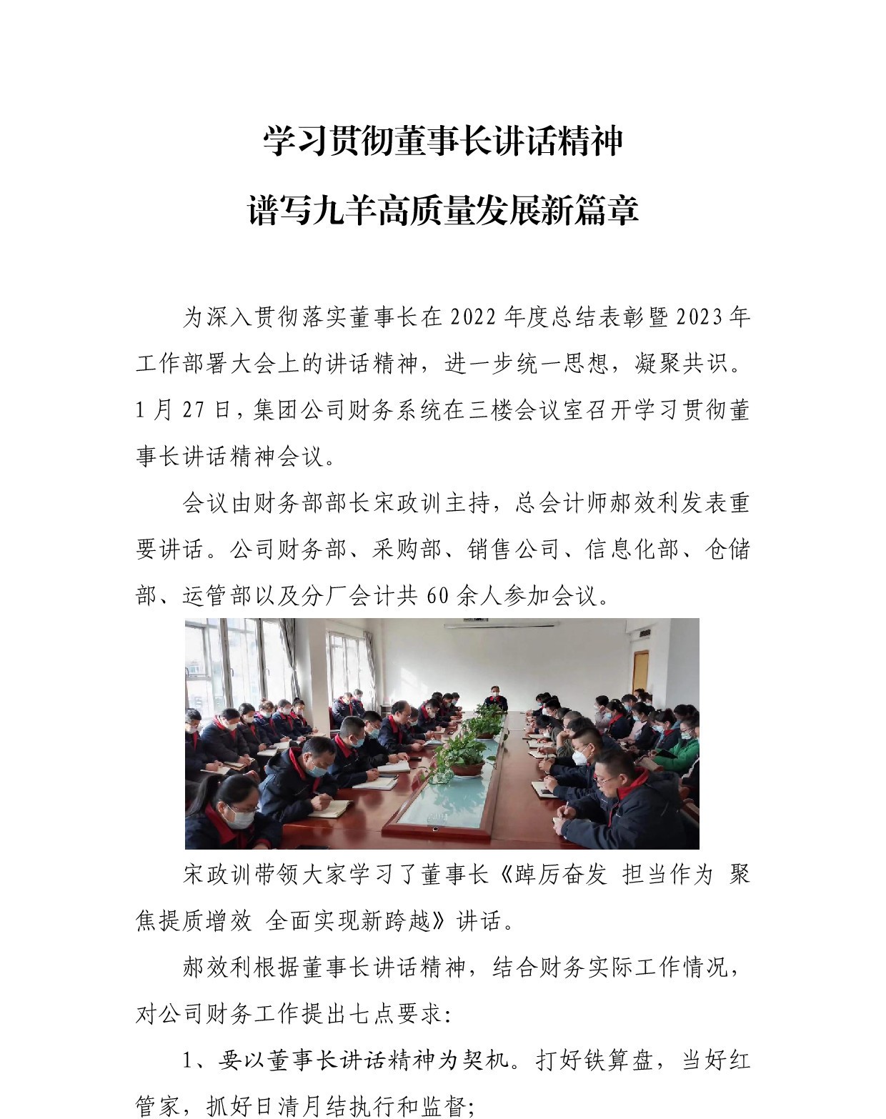 学习贯彻董事长讲话精神 谱写九羊高质量发展新篇章